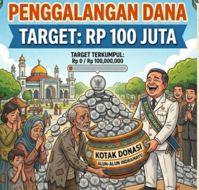 “Kita mulai mengumpulkan koin untuk ganti rugi kerusakan fasum Alun-Alun Indramayu,” ucap seorang pria dalam video tersebut sambil menghitung tumpukan recehan di tengah kerumunan warga yang bersahaja.