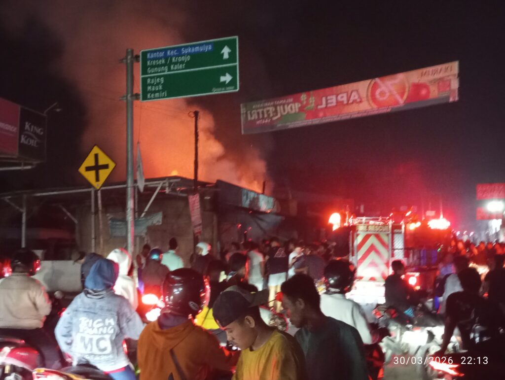 Exposebanten.com | TANGERANG – Kebakaran hebat menghanguskan tiga unit toko di kawasan Merak Pintu Air, Jalan Raya Balaraja-Kresek, Desa Parahu, Kecamatan Sukamulya, Kabupaten Tangerang, Kamis (30/3/2026) malam.