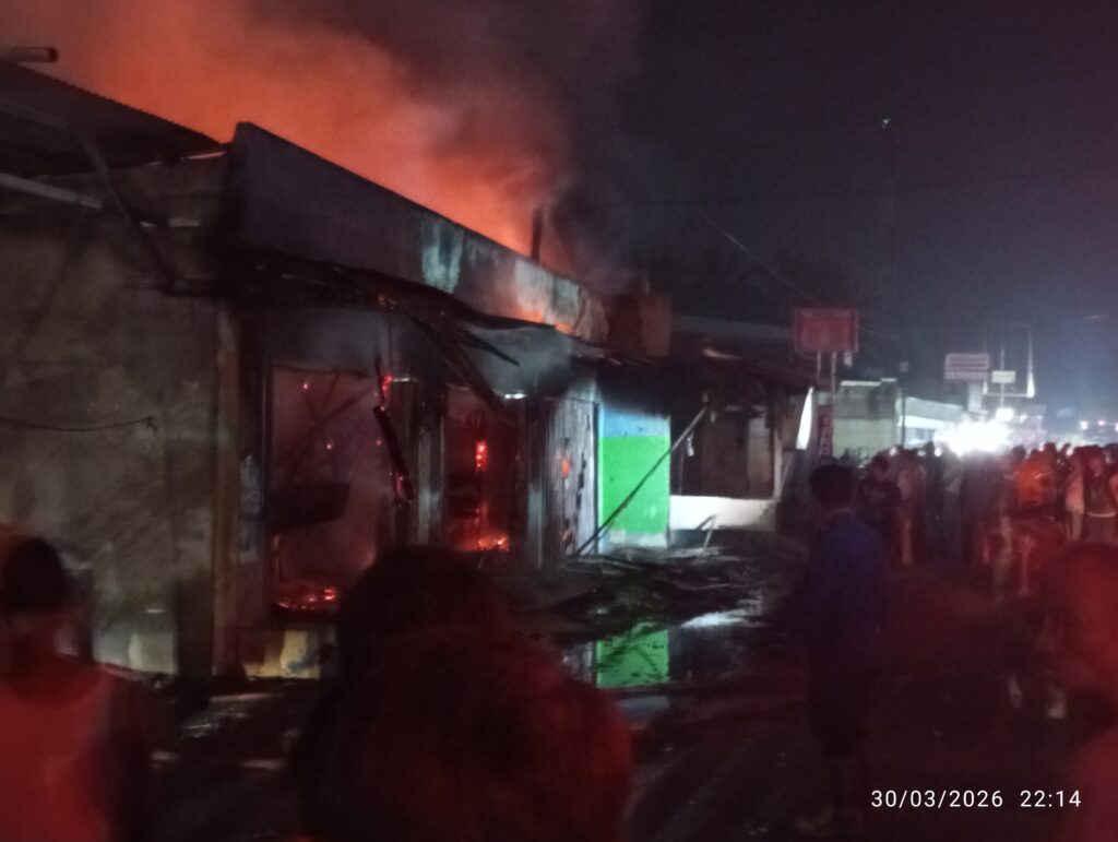 Exposebanten.com | TANGERANG – Kebakaran hebat menghanguskan tiga unit toko di kawasan Merak Pintu Air, Jalan Raya Balaraja-Kresek, Desa Parahu, Kecamatan Sukamulya, Kabupaten Tangerang, Kamis (30/3/2026) malam.